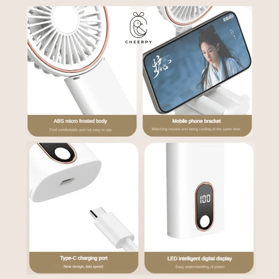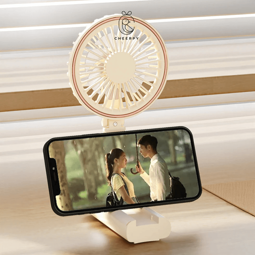 2-in-1 Design: Fan + Phone Stand. Enjoy hands-free viewing while staying cool.